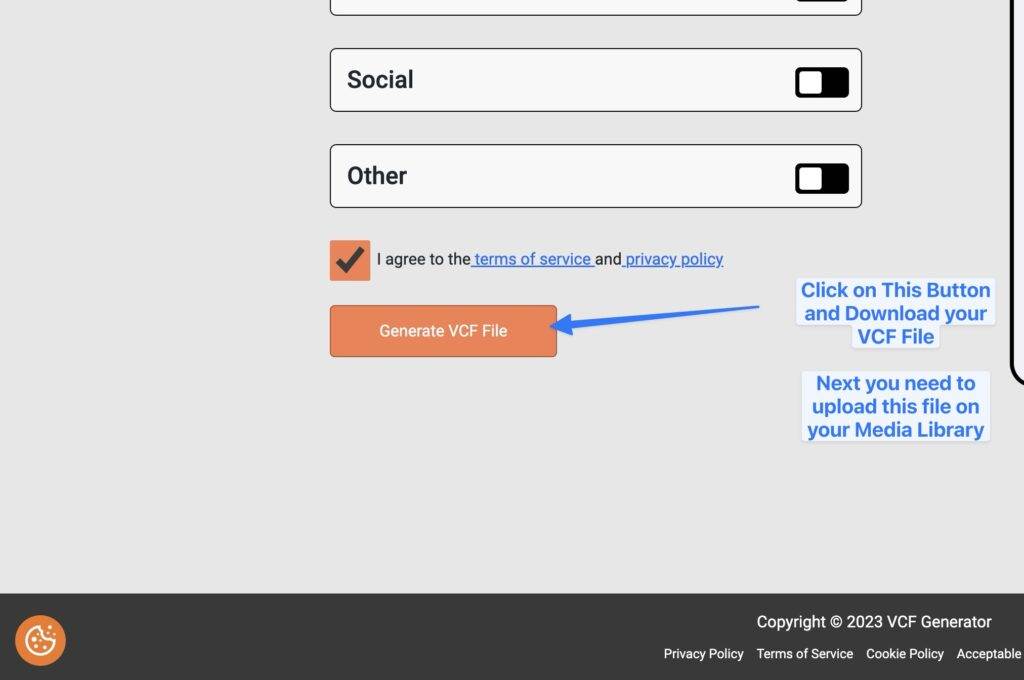 To generate a vCard file using VCFgenerator.com, follow these simple steps: